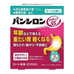 パンシロン アクティブ55 STは年齢などで増える重たい胃や、胃もたれ・胸やけ・不快感に効く胃腸薬です。