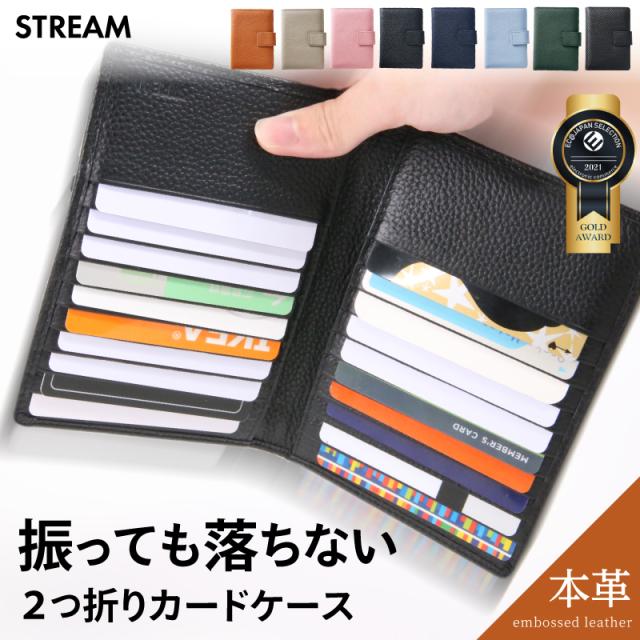 二つ折りカードケース 本革 スリム 大容量 メンズ レディース カードケース Stream 診察券 パスポート ポスト投函便で発送 20代 30代 40代 50代 60代