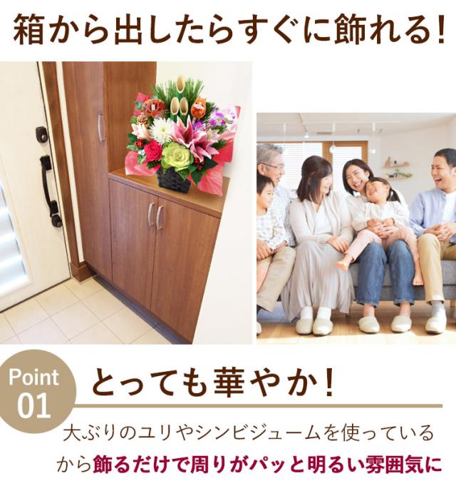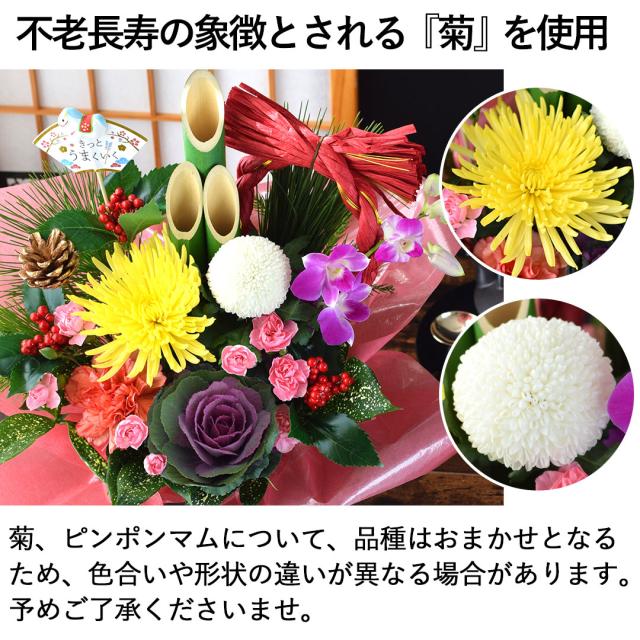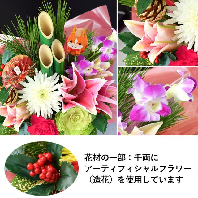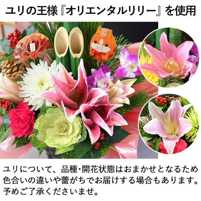 正月飾り 門松 干支 生花 アレンジメント ユリ シンビジウム ピンポンマム アナスタシア キク 菊 お正月 花飾り 迎春 花