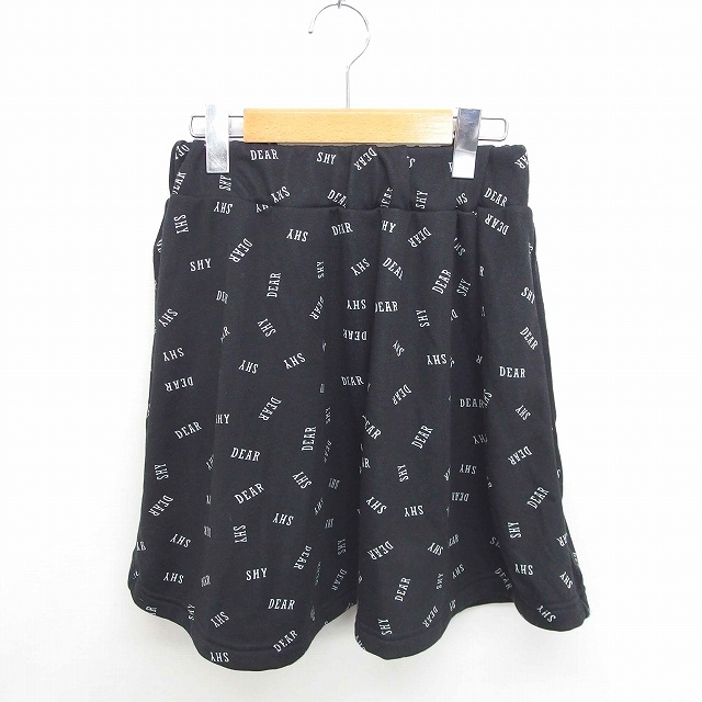 【中古】culots スカート ギャザー フレア ひざ丈 英字 裏起毛 M ブラック ホワイト 黒 白 /TT35 レディース