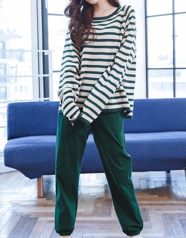 ゆったりと着ていただける、ボーダー柄のルームウェア。