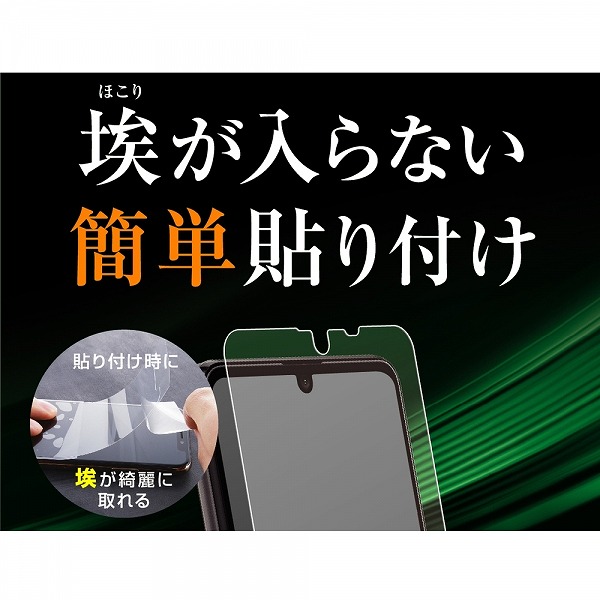 何度も位置決めが行えて、同時に画面に付いているほこり等を吸着するため、ほこり混入を軽減し安心して貼り付けることができます。229gの鉄球を130cmの高さから落としても割れない特有の弾力性と柔軟性により、通常のPETフィルムでは貼る事のできなかった画面の端までしっかり保護光の映りこみが少ないのが反射防止の特徴。つや消し加工で不快なギラツキ、画面のちらつきを極限まで抑えました。
