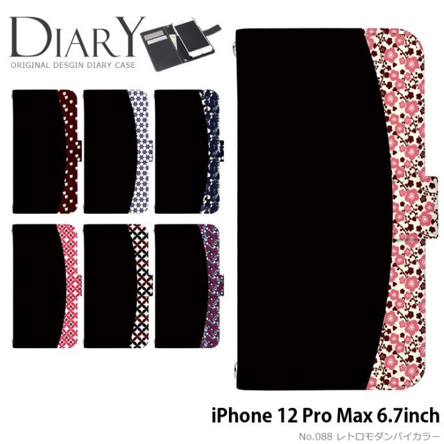 iPhone 12 Pro Max 6.7inch ケース 手帳型 デザイン レトロモダンバイカラー