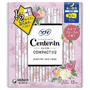 センターインコンパクト1/2 スイートフローラルの香り 多い夜用 羽つき(12枚入)