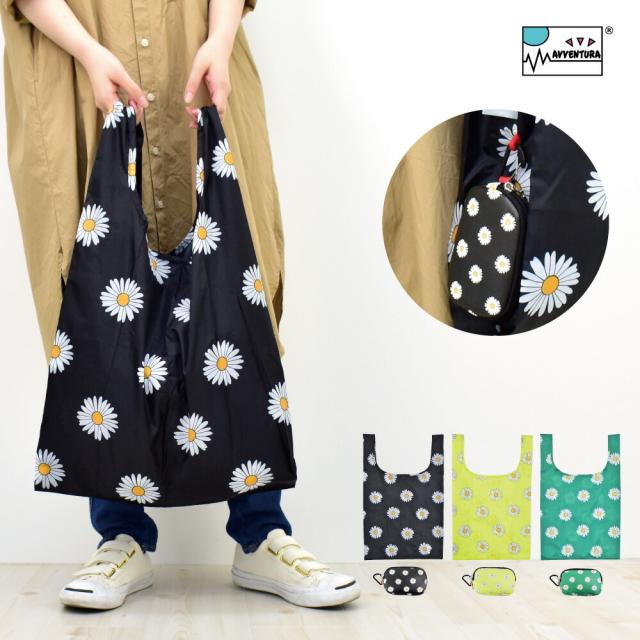 メール便送料無料 アヴェンチュラ エコバッグ マイバッグ ショッパー マルシェバッグ 大容量 大きめ 大型 大 Mサイズ カラビナ 収納 携帯 合皮 花柄 レディース 大人 女性 大学生 女子 折りたたみ コンパクト スーパー レジ 手提げ かわいい おしゃれ 人気 ブランド