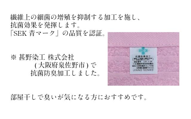嫌な臭いをつかなくするには、タオルの乾きが重要なポイントなので、早く乾かす為の厚みや、織り方を工夫すると共に、抗菌防臭加工を施しております。