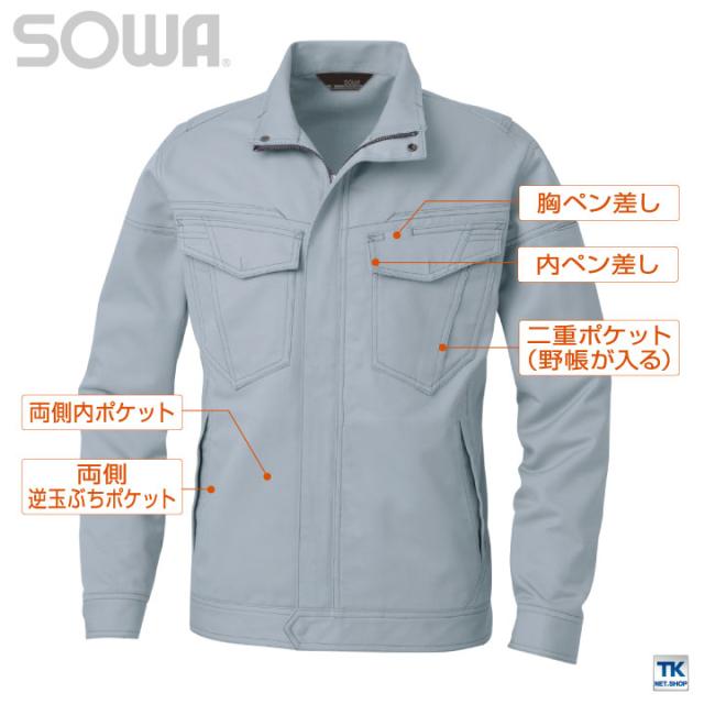 長袖ブルゾン ストレッチ 作業ジャンパー 作業着 作業服 ジャケット アウター ワークウェア 消臭 吸汗性 SOWA 桑和 レディース対応 秋冬 おしゃれ 長袖 sw-5042-00