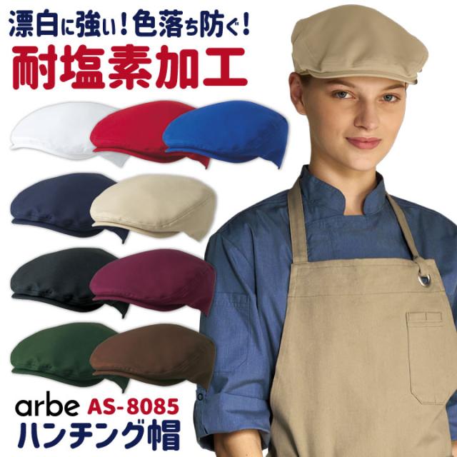 ハンチング帽 arbe アルベ 耐塩素系漂白剤加工 はつ油 制電 厨房服 レストラン カフェ 居酒屋 飲食店 サービス ユニフォーム CHITOSE チトセ 帽子 ネコポス ct-as8085
