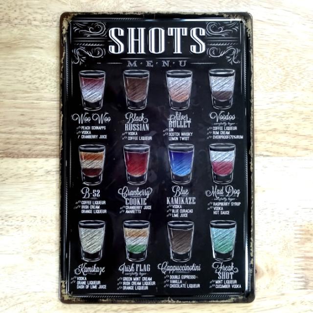 アメリカン ブリキ看板 SHOTS ドリンク カラフル プレート 壁飾り ビンテージ 雑貨 インテリア 可愛い かわいい かっこいい サーファー カフェ 店舗