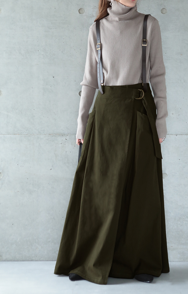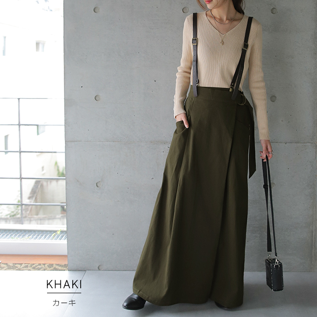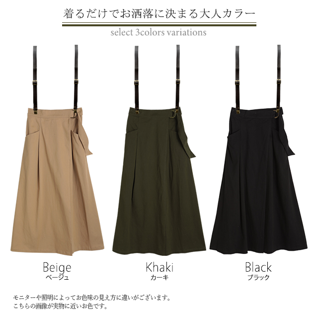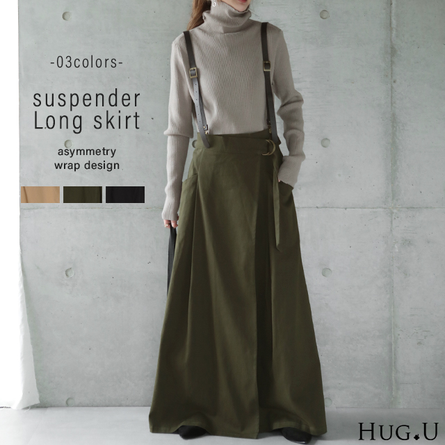 ゴム ラップスカート サスペンダースカート サスペンダー ベルト ワーク ワークスカート Aラインスカート Aライン アシンメトリー アシメ ベイカースカート カジュアル フレア フレアスカート マキシ マキシスカート タックスカート 調節可能 高身長 トールサイズ カーキ グリーン ベージュ ブラック 黒 黒色 緑 緑色 ゴムウエスト ゴムウェスト ウエストゴム ウェストゴム ゴム フリーサイズ S M L 2L 3L XL XXL 2XL 20代 30代 40代 50代 長い 長め おしゃれ 母の日 お洒落 オシャレ かわいい 可愛い カワイイ HUG.U HUGU ハグユー はぐゆー