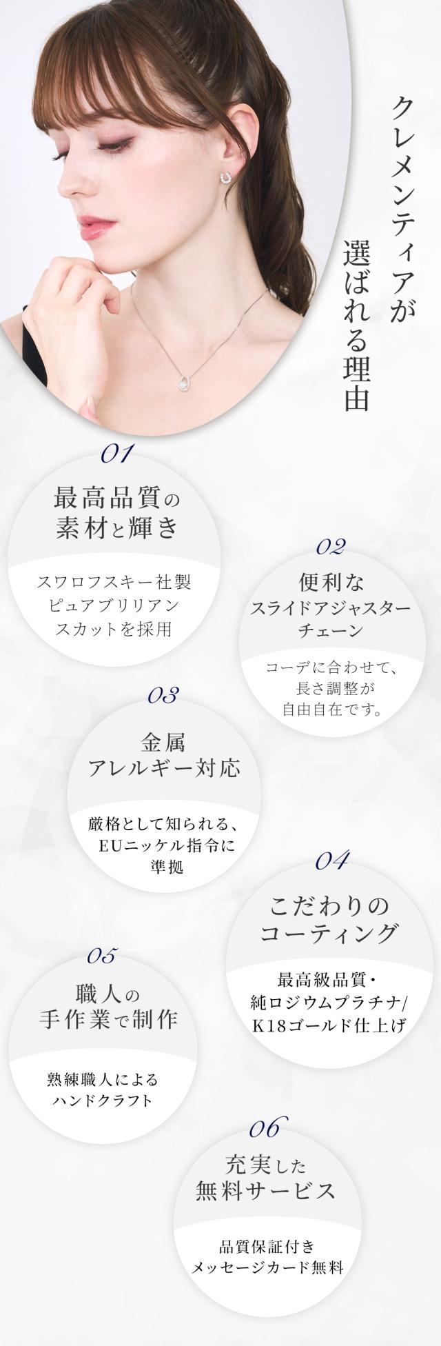 地金素材にもこだわり、最高級品質純ロジウムプラチナ仕上げを採用、シンプルながら気品ある落ち着いたデザインに仕上げております。