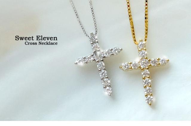 ネックレス レディース アレルギー対応 18金 プラチナ 仕上 スイートイレブン クロス 誕生日プレゼント 女性 雑貨 60代 40代 20代 30代 50代 母 結婚記念日 プレゼント 妻 ブランド ギフト 即日