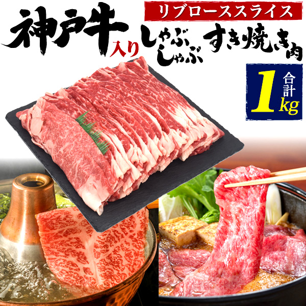 肉 ギフト 神戸牛スライス & 国産牛リブローススライス(特上ロース)セット 合計1kg(約5〜7人用) 和牛 牛肉 お肉 スライス肉 お祝い 霜降り 1枚ずつ包装 黒毛和牛 国産 kobebeef スキヤキ シャブシャブ ブランド牛 送料無料 2026年 ホワイトデー ギフト 熨斗対応