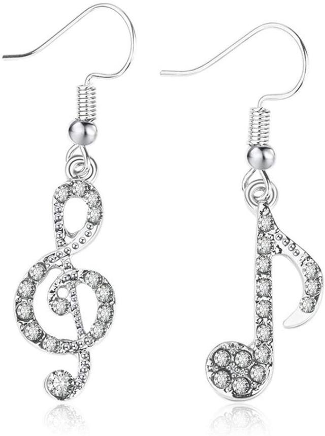 ペア 音符タイプ ピアス ★ レディース ジュエリー ラインストーン ピアス 可愛い イヤリング 両耳用オシャレ アクセサリー 銀 K22