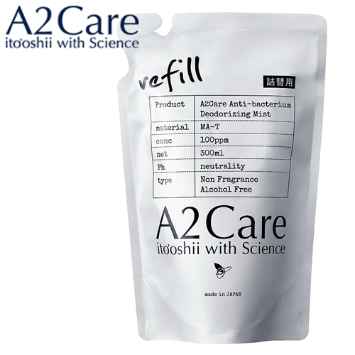 A2Care エーツーケア 300mL レフィル 詰め替え / A2ケア 日本製 アルコールフリー 清潔 安全 衣類 洋服 部屋 靴 トイレ ペット 赤ちゃん ベッド カビ ウイルス対策 除菌 消臭 無臭