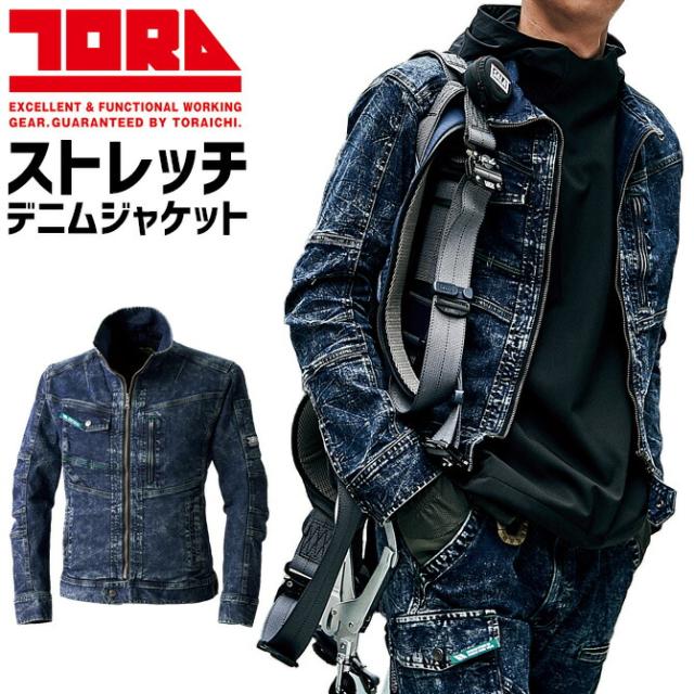 ストレッチデニム長袖ブルゾン 寅壱 8920-124 メンズ オールシーズン 3Dパターン スタンドカラー ビンテージ加工 ワークジャケット 作業服 作業着