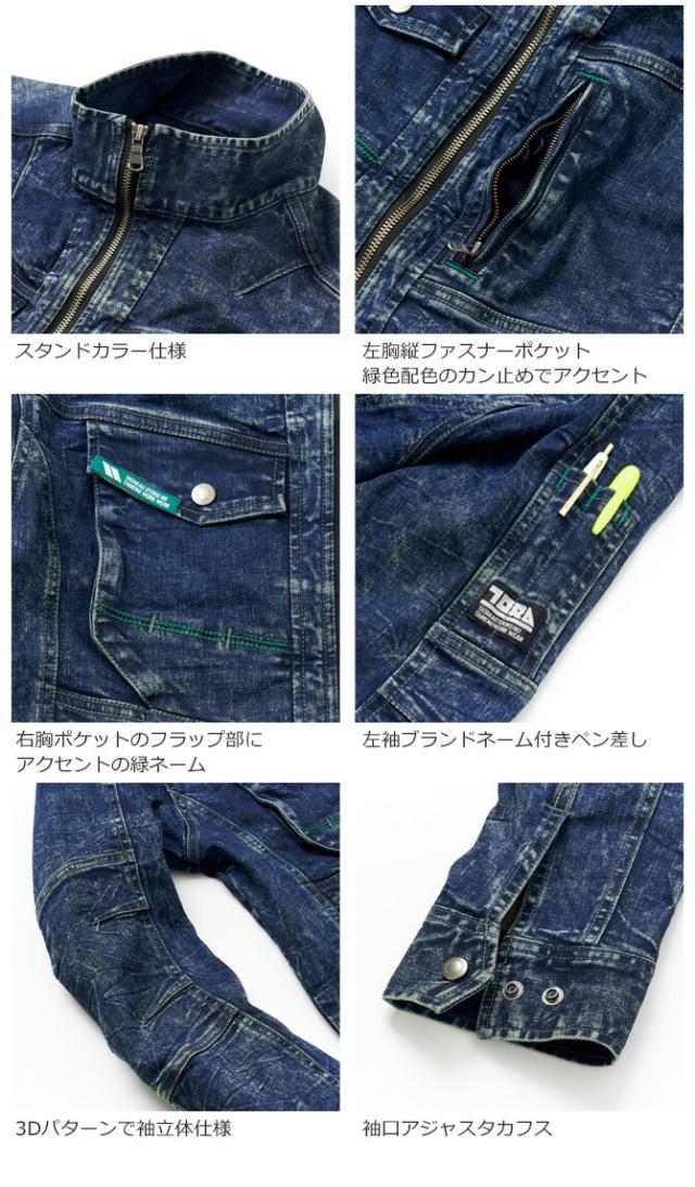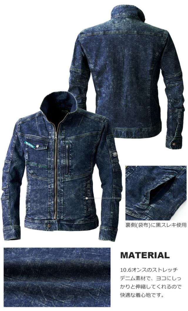 | 寅壱のオールシーズン使える、スタンドカラー仕様のストレッチデニム長袖ブルゾンです。 こだわりを感じさせる深みのある色合いと、存在感のあるビンテージ加工が特徴です。 動きやすい3Dパターンによる立体仕様と、ヨコに伸びる10.6ozのストレッチデニム素材の使用で快適な着心地です。 ラフに着こなせるスタイリッシュなスリムフィットのワークウェアです。 | ||||