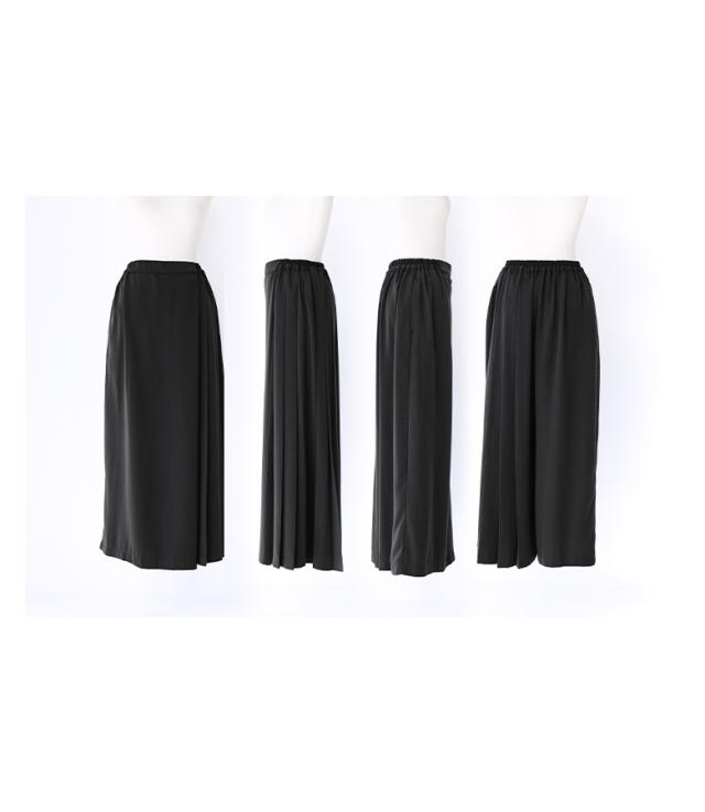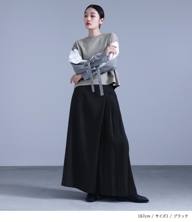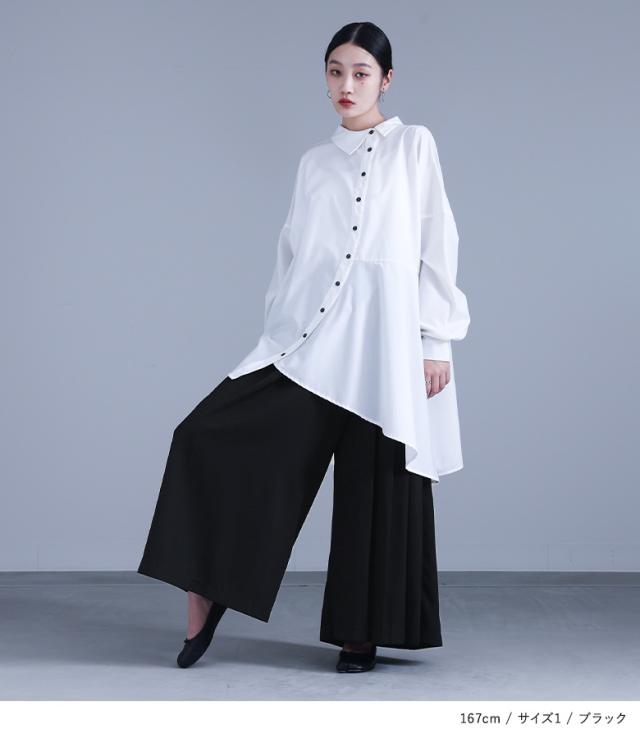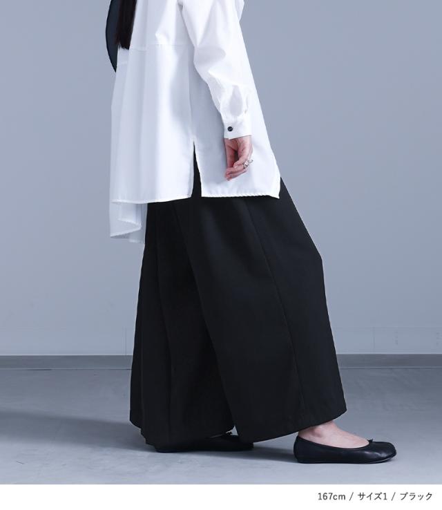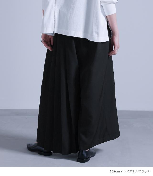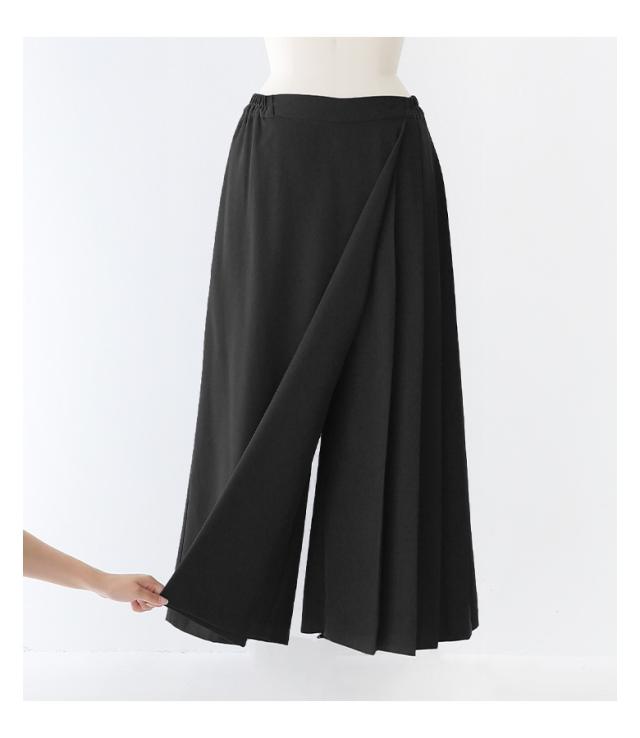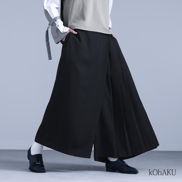 レディース ボトムス パンツ ロングパンツ ワイドパンツ スカンツ スカーチョ ガウチョパンツ ロング丈 マキシ丈 フルレングス プリーツ 片側プリーツ 前重ね カシュクール カシュクール風 ウエストゴム アシンメトリー アシメ 切り替え 無地 ツイル生地 おうちで洗える 秋冬春 カジュアル 大人女子 大人可愛い きれいめ モード ラフ かっこいい Mサイズ Lサイズ LLサイズ 3Lサイズ ぽっちゃり 体型カバー 大きいサイズ kOhAKU コハク ブラック 黒 【パンツ】[ID]pek0272