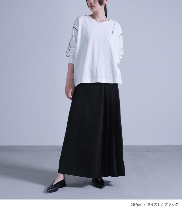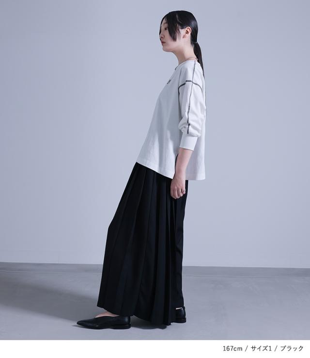 | 「小さいさん」 154cm/47kg B81 W65 H85 普段はS またはMサイズ着用。 | 【1(M〜L)】 ◆着丈:ウエストで穿いてかかと位、腰で穿いてかかとが隠れる位 ウエストがゴム仕様なのでずれ落ちる心配はないですが、丈が長いので、高めのヒールと合わせることをおススメします。 |
