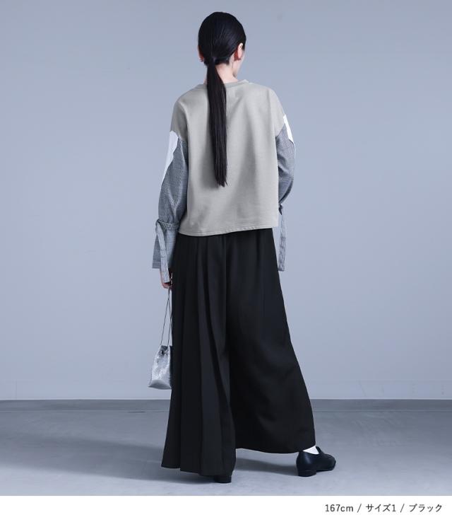 『kOhAKUカシュクール風アシメプリーツパンツ』 【メール便不可】【20】[ワイドパンツ レディース ロング パンツ ボトムス アシンメトリー アシメ プリーツ 前重ね カシュクール風 ツイル生地 無地 コハク pek0272]