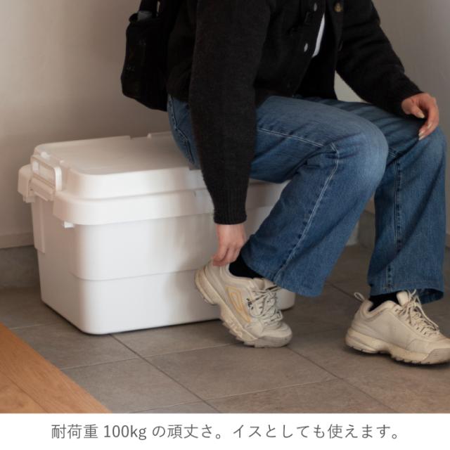 耐荷重100kgの非常に頑丈な収納ボックス。アウトドアや室内の収納に。頑丈なので座ることも可能です。