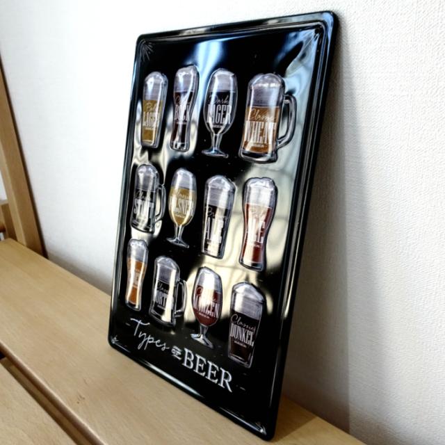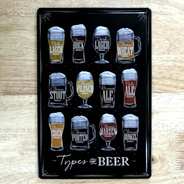 アメリカン ブリキ看板 TYPE OF BEER ビール ドリンク プレート 壁飾り ビンテージ 雑貨 インテリア 可愛い かわいい サーファー カフェ 店舗