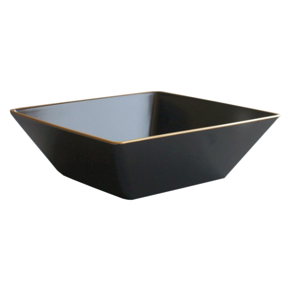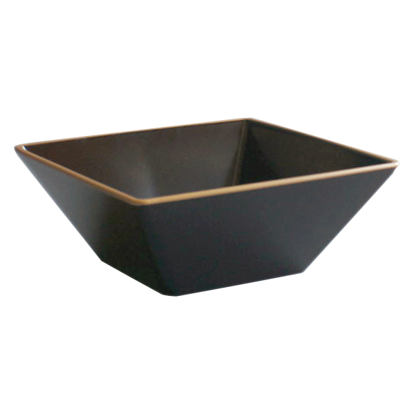 丈夫なプラスチック製で軽くて割れにくく、扱いやすくなっています。取り皿や副菜を盛り付けるのに最適なサイズ。金色のフチと、少し赤みがかった茶色の配色がより一層お料理を引き立て、華やかに演出します。