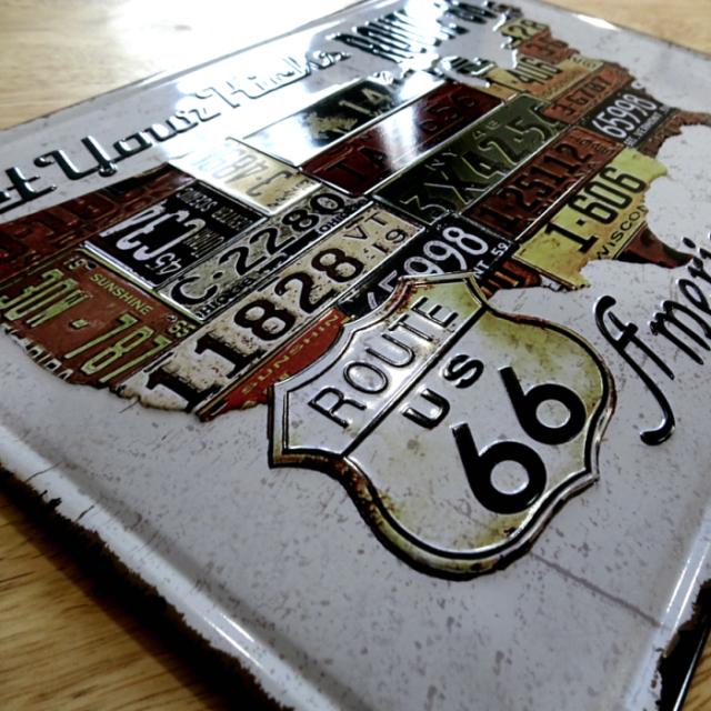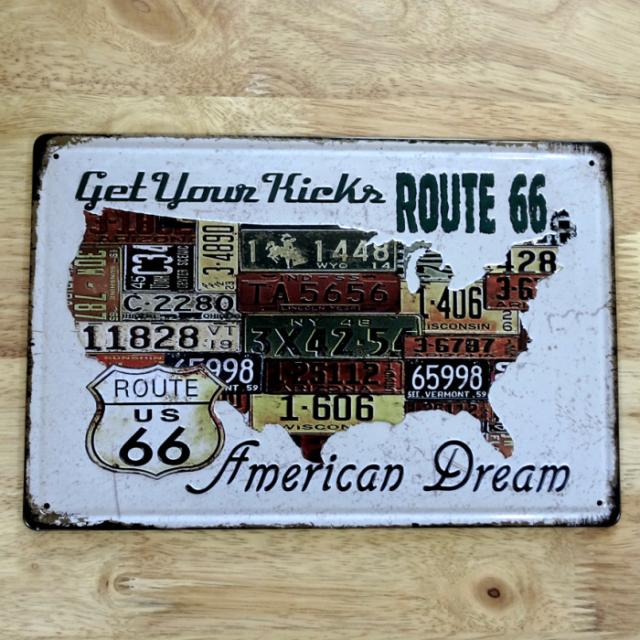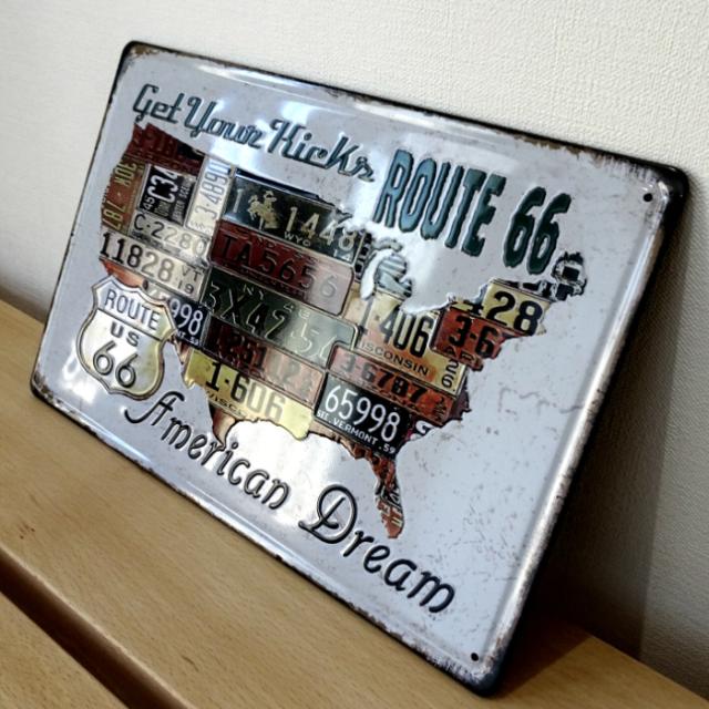アメリカン ブリキ看板 66 AMERICAN DREAM ルート66 ナンバープレート ガレージ プレート 壁飾り ビンテージ 雑貨 インテリア 可愛い