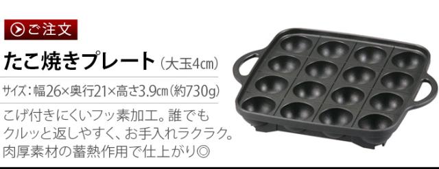 | こげ付きにくいフッ素加工。誰でもクルッと返しやすく、お手入れラクラク。肉厚素材の蓄熱作用で仕上がり◎ |