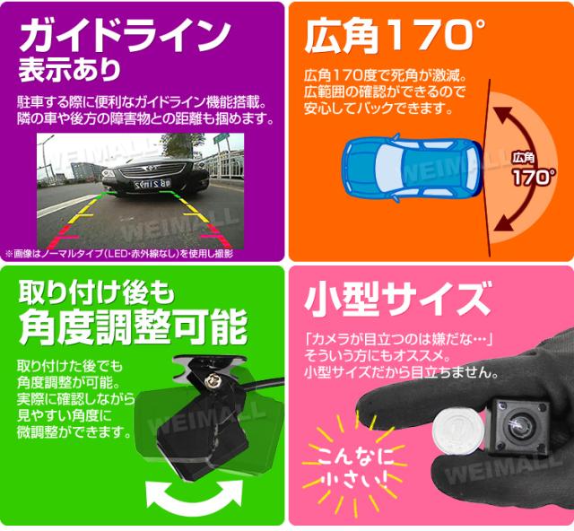 バックカメラ 赤外線ライト搭載 夜間 ガイドライン機能付 防水 防塵 CCD カメラ 小型 広角170度 車載カメラ リアカメラ 角度調整可能 車載バックカメラ 赤外線機能搭載 車 駐車 カメラ ドライブ ドライブレコーダー 角型 12V