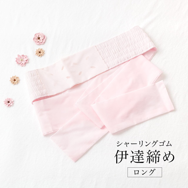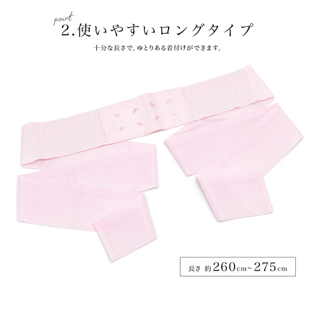 伊達締め シャーリング ロング 着付け小物 和装小物 通年 だてじめ ピンク メール便 送料無料