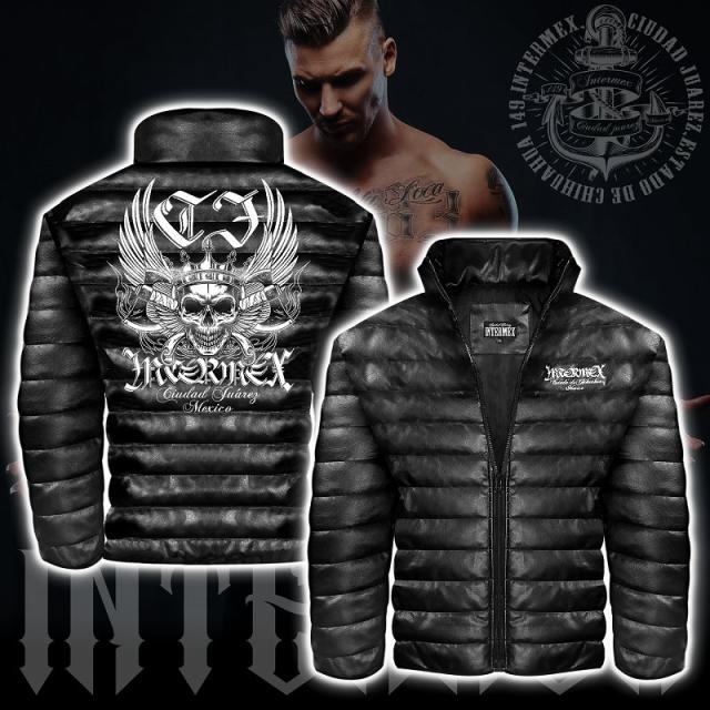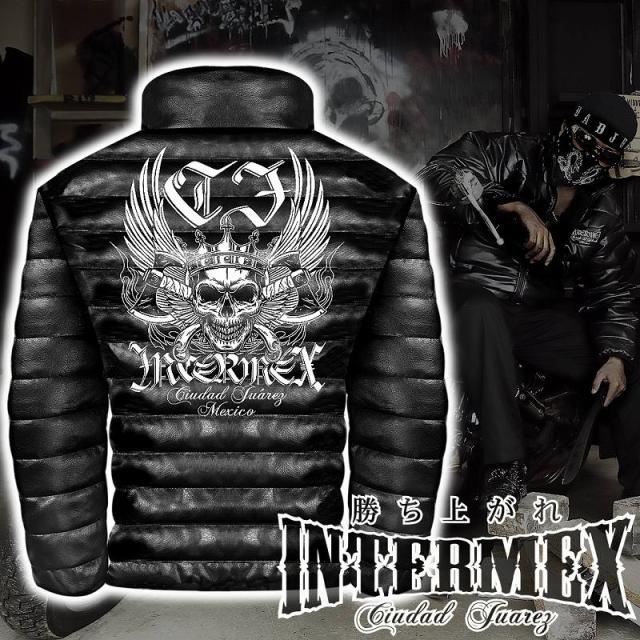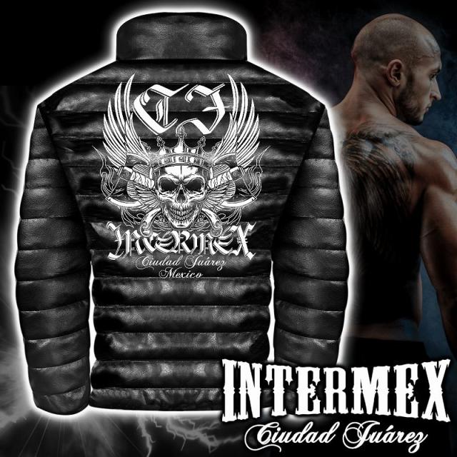 レザー調 中綿ジャケット メンズファッション オラオラ系 INTERMEX ITM-048 羽スカル 髑髏 ヤンキー 防寒 上着 服 ヤクザ ブランド 刺繍 秋冬 ライダース バイク乗り ギャング チカーノ B系 HIPHOP系 バイカー 悪党の店 バースジャパン BIRTHJAPAN