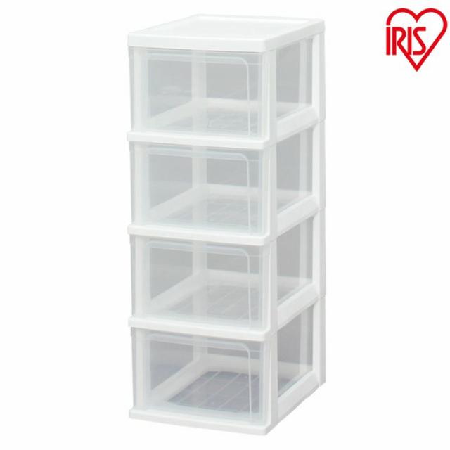 収納スペースをすっきり整理!衣類の収納や、室内・サニタリーなどでの身の回りの整理などに最適なチェストです♪引出しには落下防止のストッパーと、スムーズに引き出せるローラーが付いています。収納物が探しやすい透明タイプです。●商品サイズ(約):幅30.9×奥行40.0×高さ82.2cm(※ローラー取付時)●引出内寸(約):幅25.3×奥行35.5×高さ17.3cm●重量:約3.3kg●材質本体・引出し:ポリプロピレンローラー:ポリアセタール樹脂●収納の目安(引出1段当たり):Yシャツなら4枚、セーターなら2枚、バスタオルなら2枚●型番:S-304