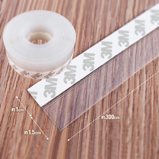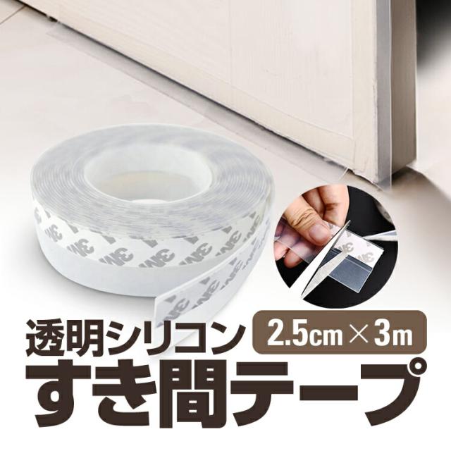 隙間テープ 防風 密封 騒音抑制 ドア下部シール 2.5cm×3m 透明シリコン 粘着テープ付き 防音 気密 断熱 防虫 ホコリ 侵入防止 GAPTP25MM