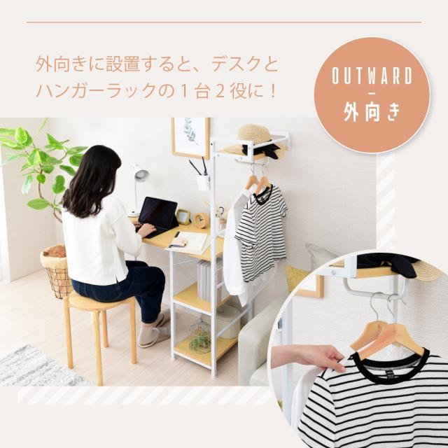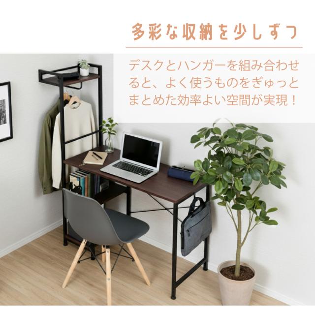 パソコンデスク 省スペース おしゃれ ハンガーラック付き 収納 ラック 一人暮らし ハイタイプ 幅90cm 机 PCデスク 学習机 シンプル コンパクト デスク ワークデスク パソコンラック オフィス 書斎 木製