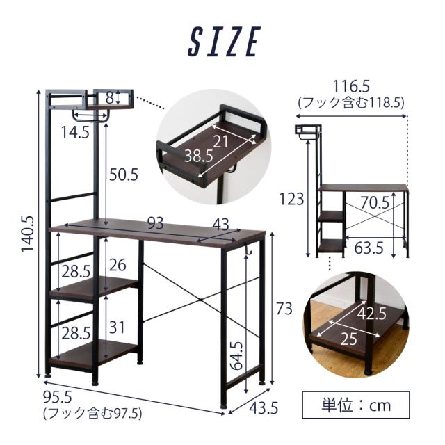 ◆本体外寸(上部ラック内向):幅約95.5(フック含む97.5)×奥行約43.5×高さ約140.5cm