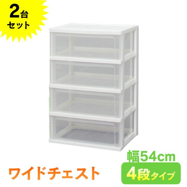 ★クーポンあり★ 【2個セット】チェスト 棚 4段 ワイドチェスト W-544 収納ボックス 引き出し 組立不要 アイリスオーヤマ 収納便利 収納ケース キャスター 押入れ収納【RCP】新生活