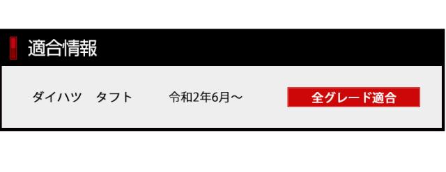| 適合 | DAIHATSU タフト 令和2年6月〜 全グレード適合 |