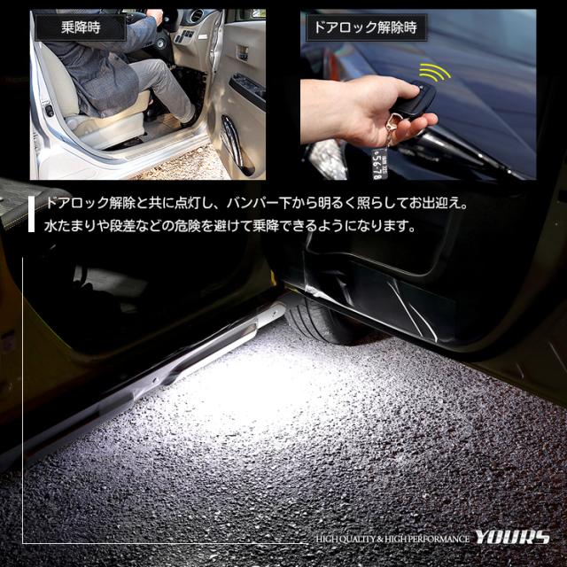 | 商品詳細 | 足元を光らせて出迎えてくれるタフト専用ウェルカムランプが新登場! 人気のタフトに標準設定の無いウェルカムランプを付けることができるキットです!ホワイトorブルーのインパクトのあるバンパーLEDで、他車と差別化できる人気のカスタマイズです。 拡散性のあるLEDを使用しているため、足元がきれいに光ります。 写真付き取扱説明書もご用意しておりますので取付も安心! LED本体の裏側には両面テープ付き。 |