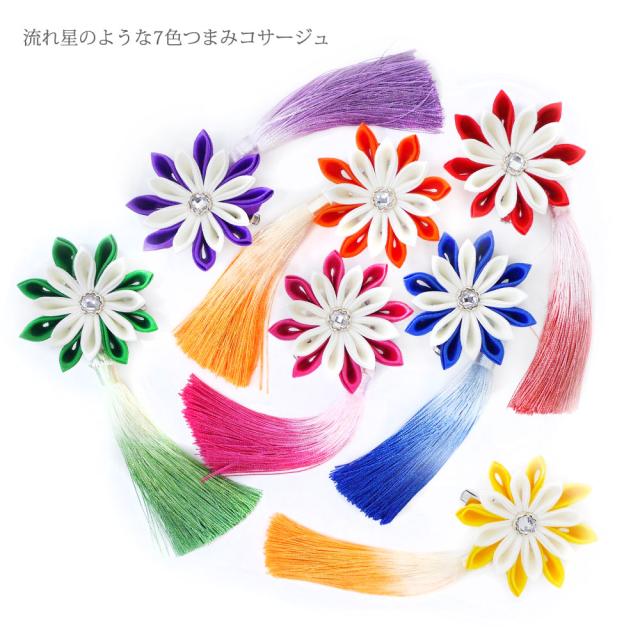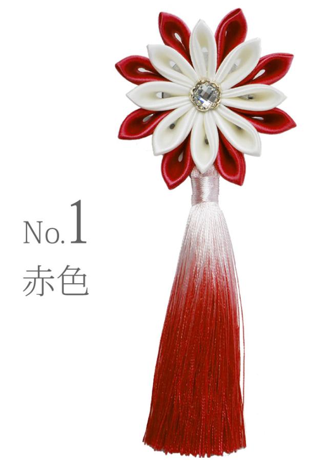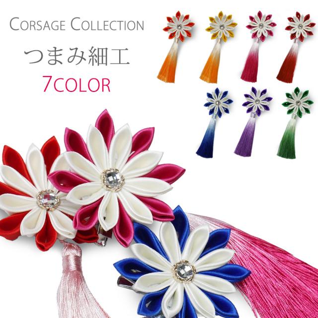 髪飾り つまみ細工 房付き コサージュ 選べる7色 ラインストーン 菊モチーフ 成人式 結婚式 卒業式 前撮り 七五三 振袖 卒業式 袴 浴衣 七五三 和装 着物