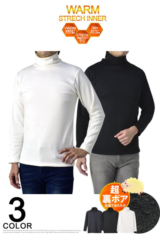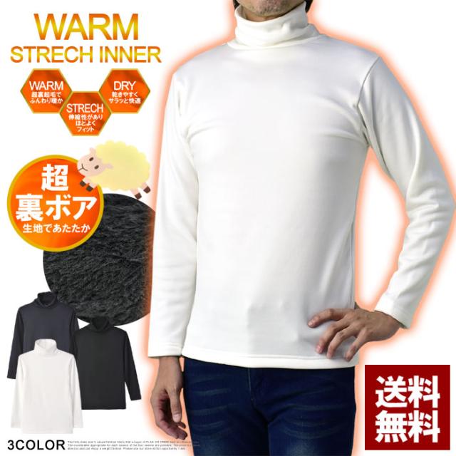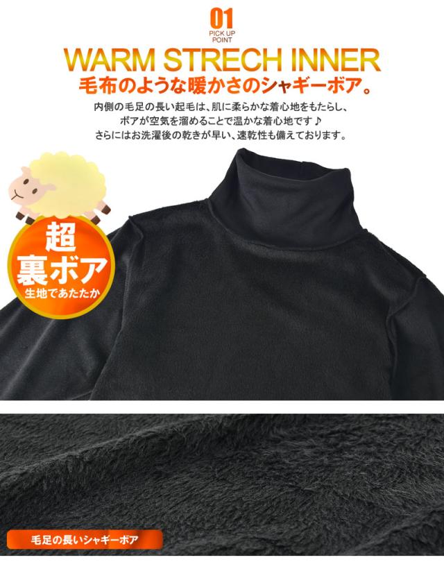 送料無料☆吸水性厚手裏ボアのタートルネックストレッチインナー暖肌着です。