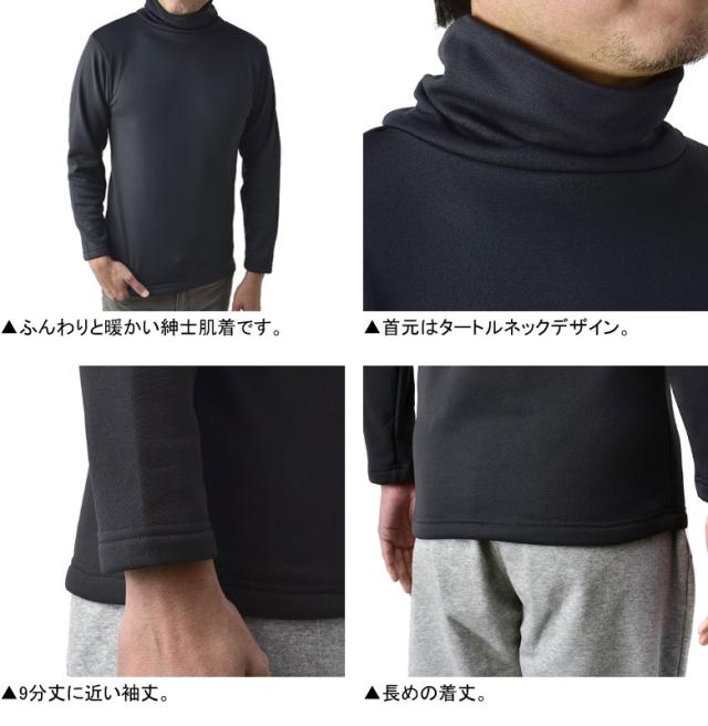 毛布のような肌着 メンズ タートル インナー 裏ボア 超厚手 裏起毛 Tシャツ 長袖 9分袖 アンダーウェア 下着【E3X】【パケ1】【A】