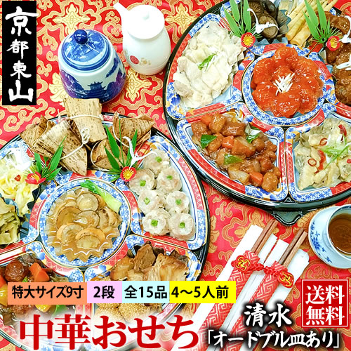 中華おせち オードブル 清水 オードブル皿あり 2026 料理 送料無料 4〜5人前 二段 2025 中華風 おせち料理 予約 早割 4人前 or 5人前 定番 有名店 osc26_f 洋風 or 中華