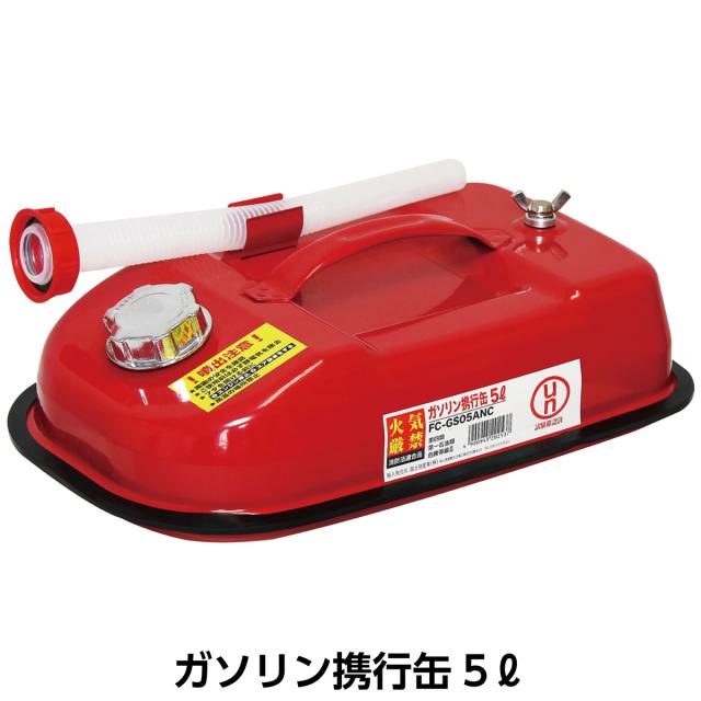 商品名:ガソリン携行缶5L /品番:FCGS05ANC /サイズ W402×D252×H128mm /仕様 本体:電気亜鉛メッキ鋼板(SECD) 口金:ステンレス キャップ:アルミ 給油ノズル:ポリエチレン(PE) パッキン:耐油性ゴム(NBR) /カラー レッド /備考 /注意点 ※製品の仕様は予告なく変更することがあります。