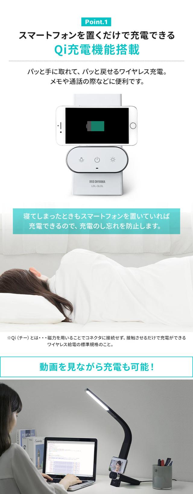 ★クーポンあり★ LEDデスクライトQi充電シリーズ 縦置きタイプ 調光・調色 LDL-QLDL LEDデスクライト 照明ライト でんき LED 机 手元 読書 LEDライト USB 照明 デスクライト 縦置き 充電 Qi充電 ですくらいと 調色 アイリスオーヤマ 送料無料