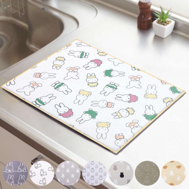 水切りマット 吸水水切りマット ミッフィー 30×40cm DickBruna ( 大人ミッフィー モノトーンミッフィー 吸水マット 水切り用マット 吸水 ディッシュマット 食器乾燥用マット 水切り用品 キッチン miffy 食器置き 水切り )