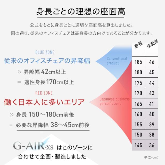 座面の高さ(SH):38〜46cm