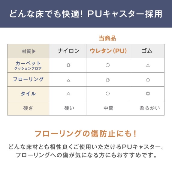 ※こちらの商品は、2022年7月29日にナイロンキャスターから床を傷つけにくいPUキャスターに仕様変更しました