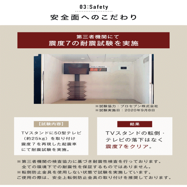 「美」を配置する天然木テレビスタンド ハイタイプ 震度7クリア 壁寄せ 壁掛け風 テレビ台 自立式 無垢 65インチ ブラウン ナチュラル 壁寄せ 転倒防止 洋室 和室 耐震対策 天然木 パイン