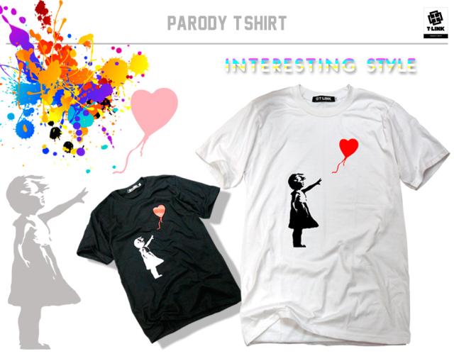 [メール便送料無料]パロディ Tシャツ おもしろ 半袖 Banksy バンクシー Girl with Balloon 風船と少女 メンズ レディース ユニセックス デザインTシャツ おしゃれTシャツ ネタTシャツ 天才落書家 個性的 半袖 トップス カットソー 夏 おみやげ プレゼント M-2XL 白 黒